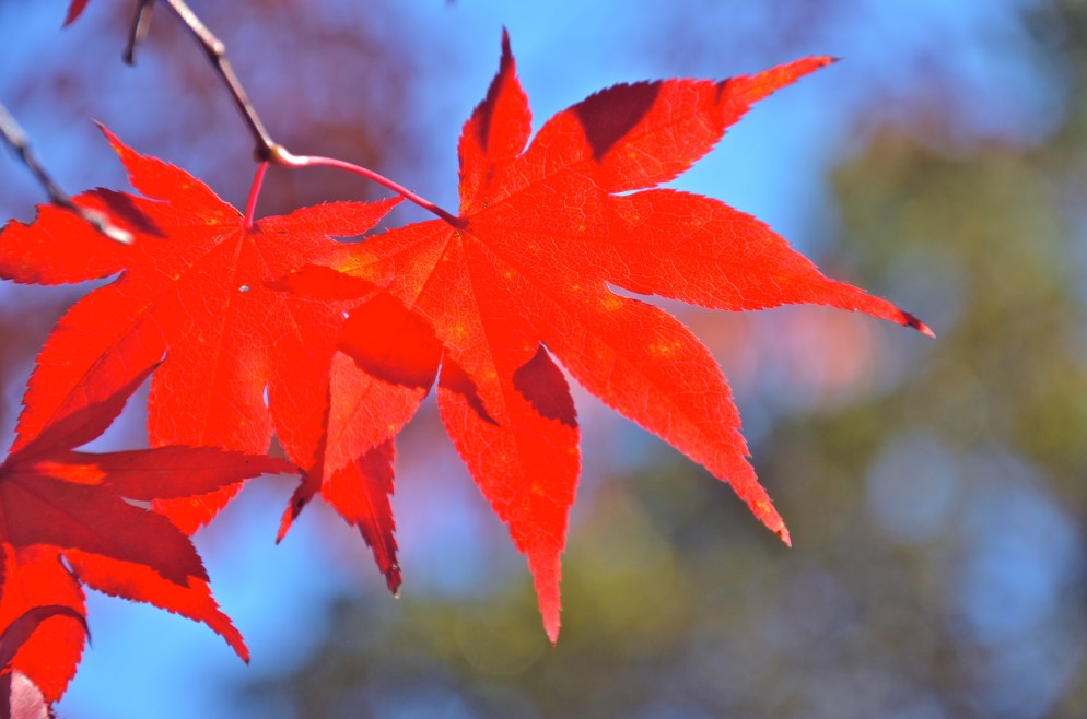 Fall colors captivate the mind with the intense red color of the Japanese Maple leaves.