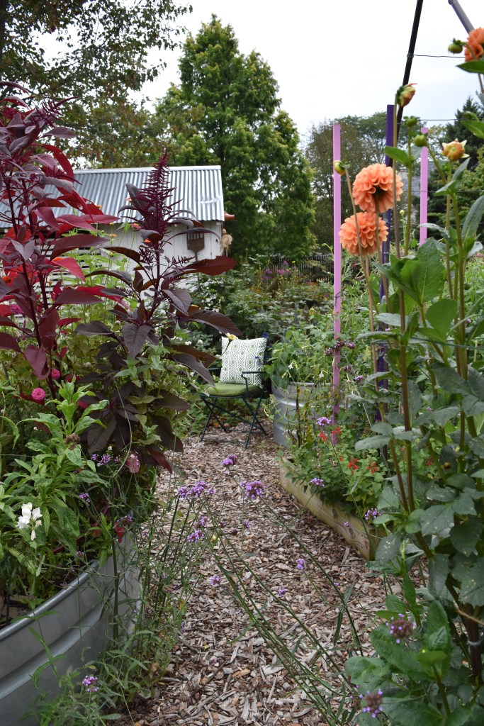 A conveniently placed chair in this flowery area at Northview is a great place to contemplate the garden