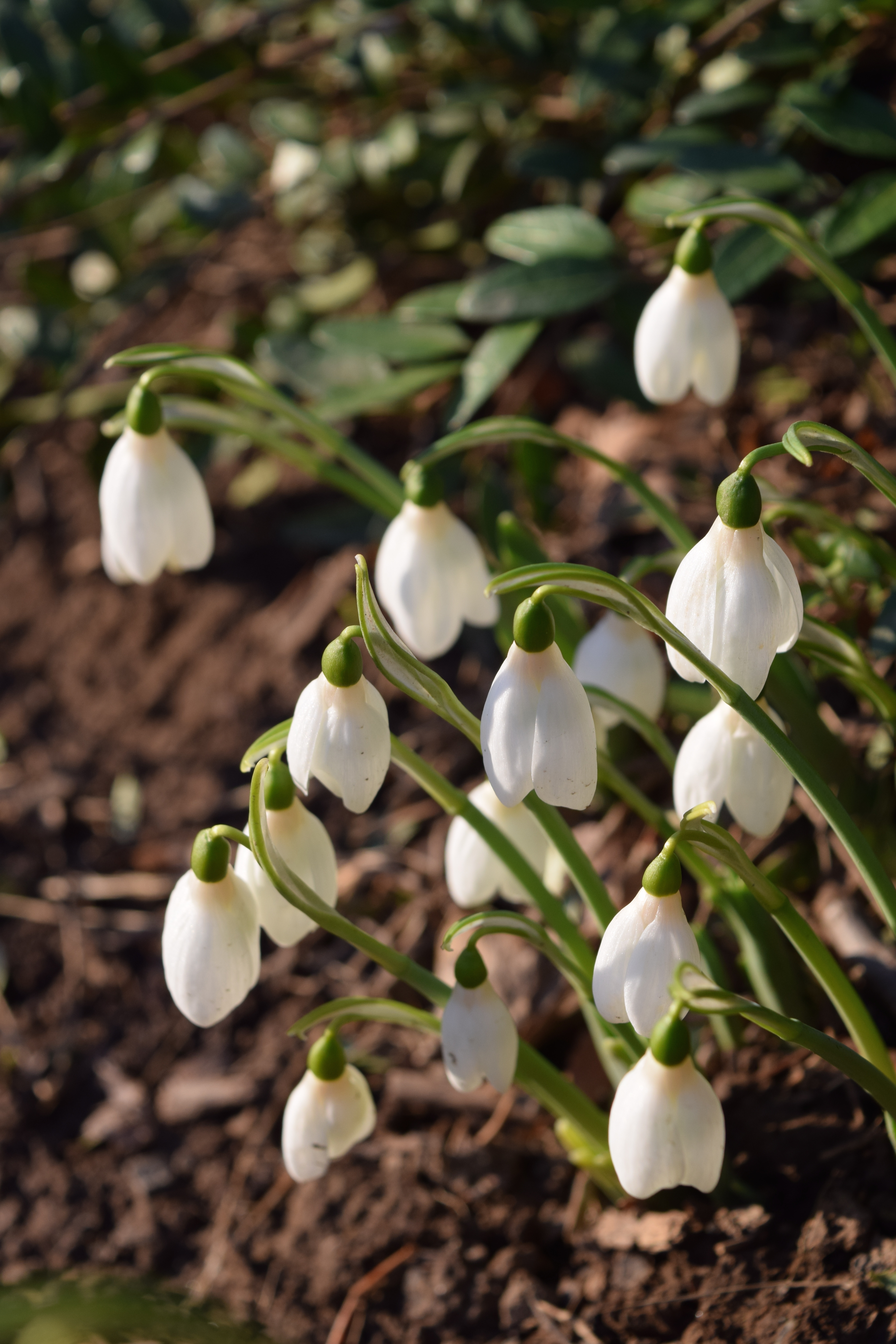 At Northview, we plant the giant snowdrop on the sunny side of a raised bank where it gets spring sunshine. This bank is not irrigated in the summer, so the bulbs remain moist but not wet. Too much moisture in the soil is the enemy of snowdrop bulbs, because they have a tendency to rot if irrigated. A position on a slope or bank provides the well-drained position that the giant snowdrop needs.