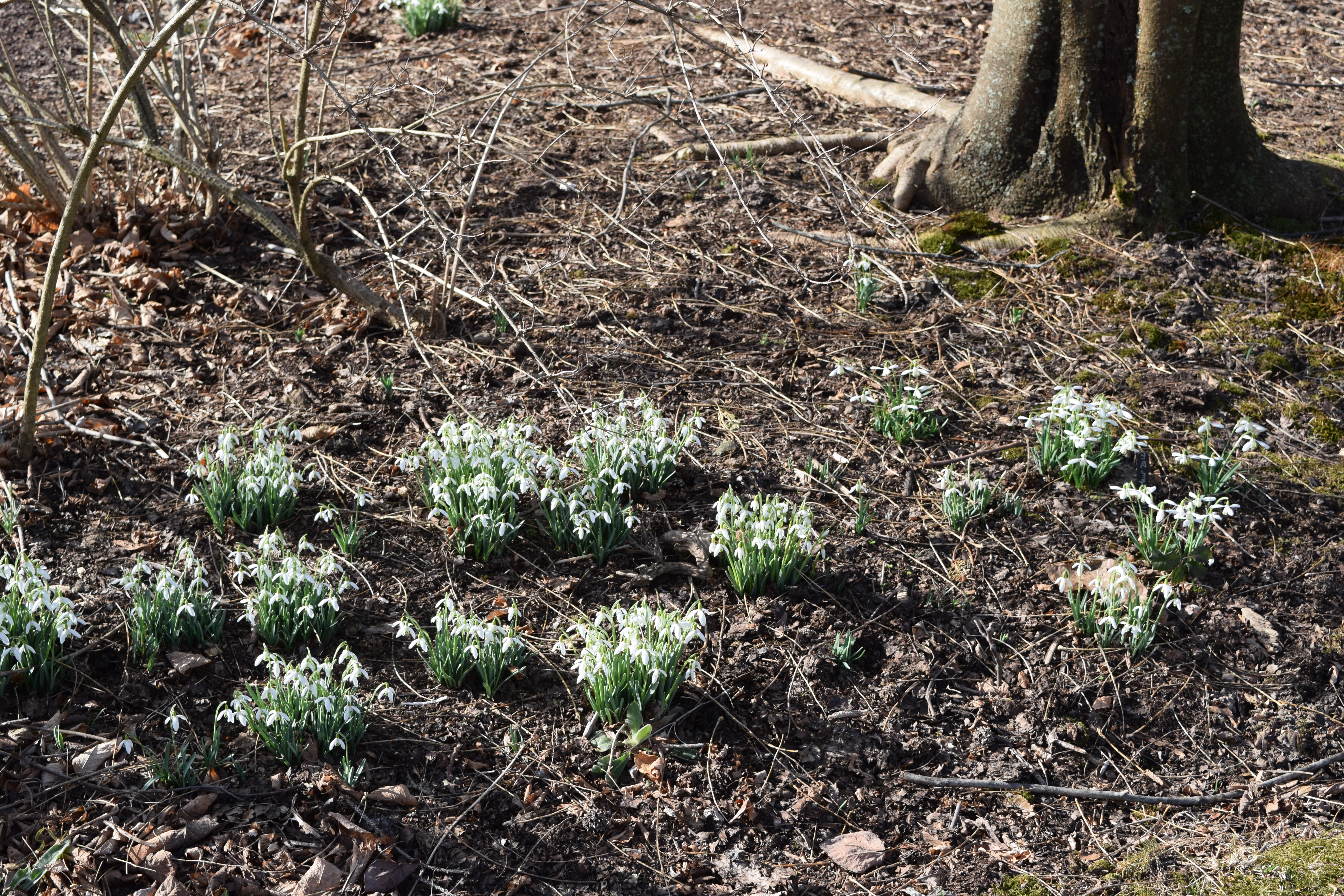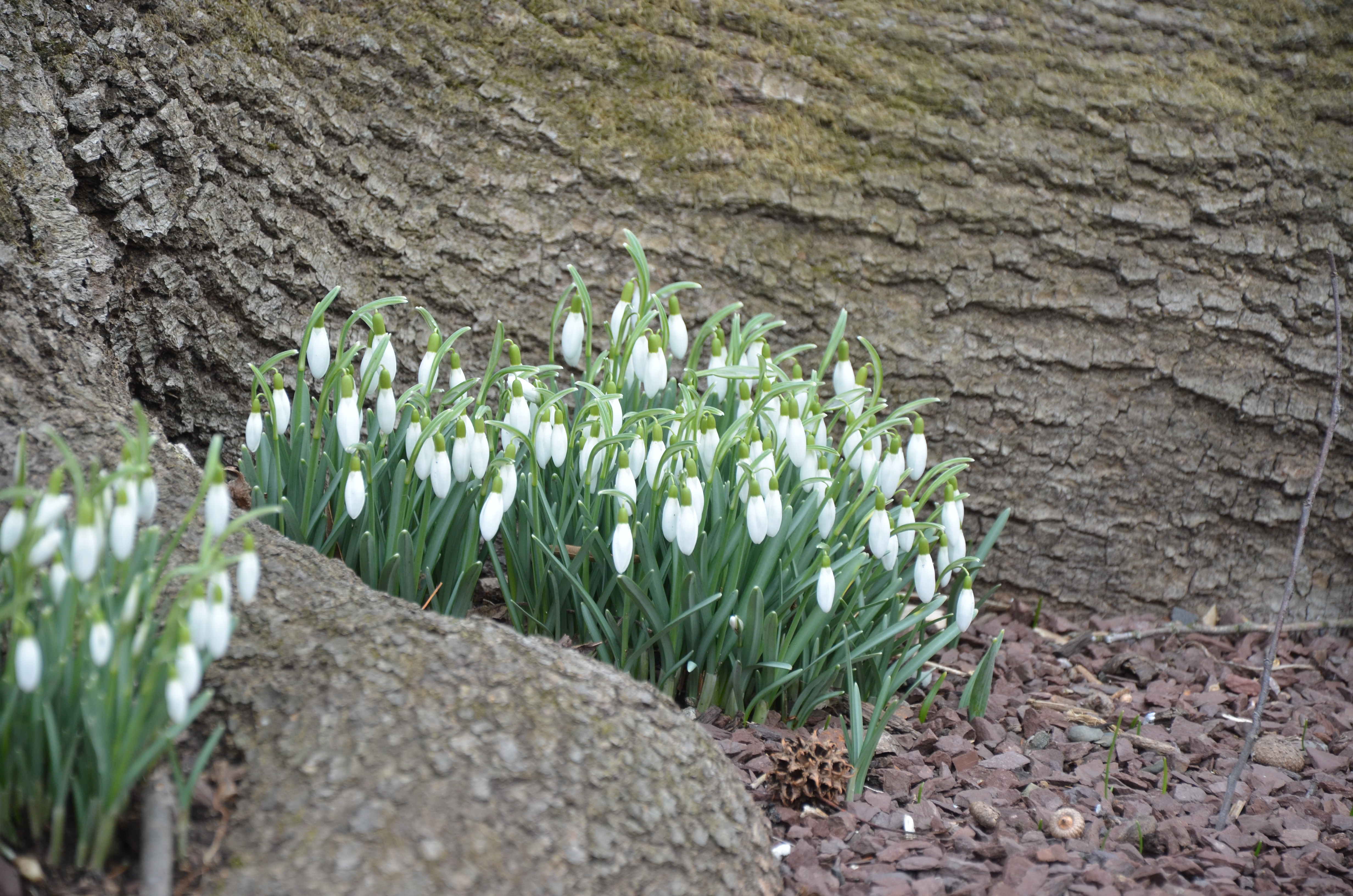 After you dig them out get them back into the soil in their new positions as soon as possible. Wrap them in damp newspaper to send them off with a snowdrop-loving friend. Once planted give the bulbs a top dressing of leaf mold (not manure – unless it is aged). The organic material feeds the snowdrops slowly and mimics the natural woodsy soil of their preferred dappled shade location.