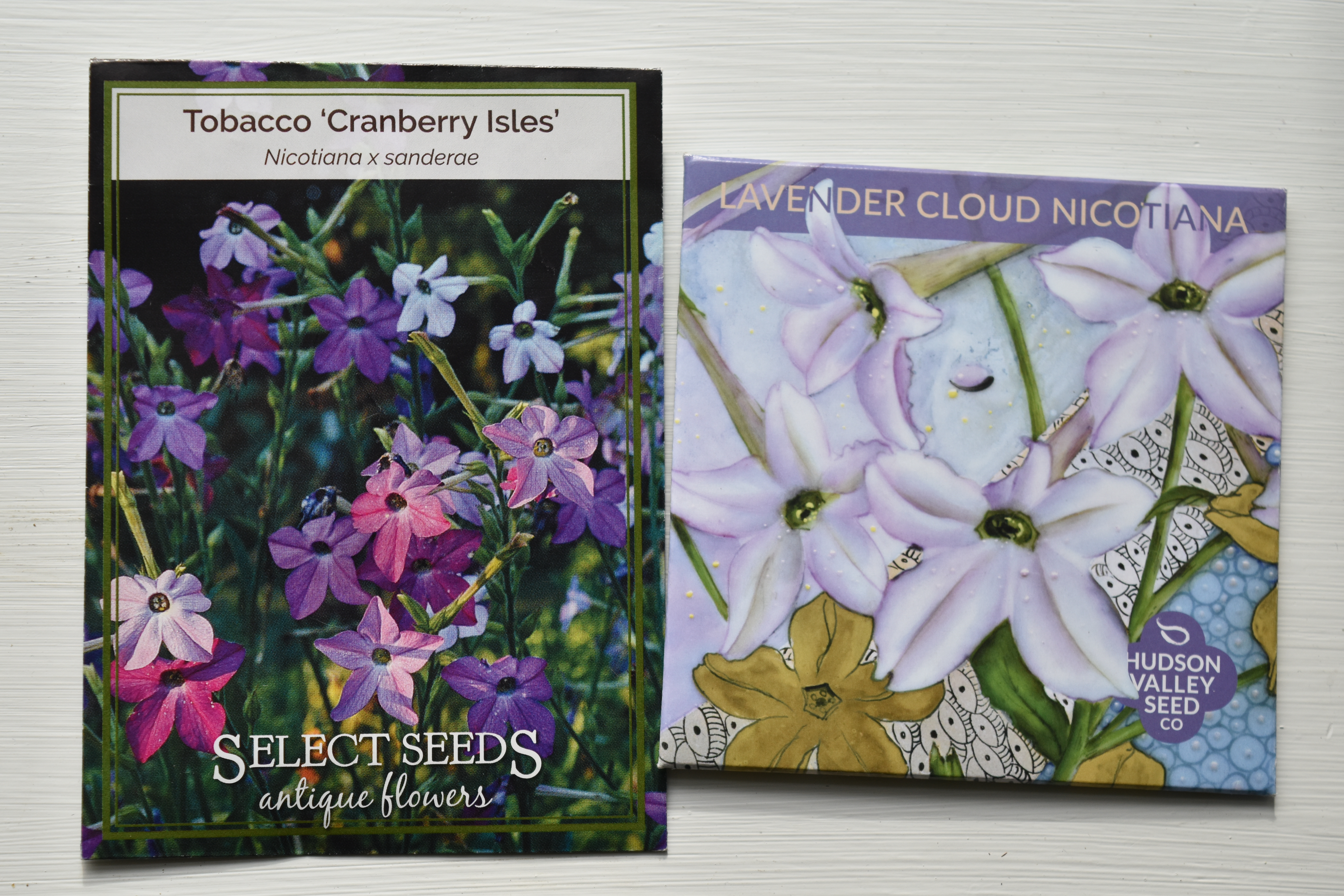 Nicotiana flowers are pollinated by night-flying moths. The ones that I love have a delicate look and airily mingle with surrounding plants. The best ones for a Moon Garden are fragrant in the evening – just when you get home from work and are walking around the garden with your favorite drink in hand. Let’s channel our inner summer thoughts as we banish away the last of the winter blues.