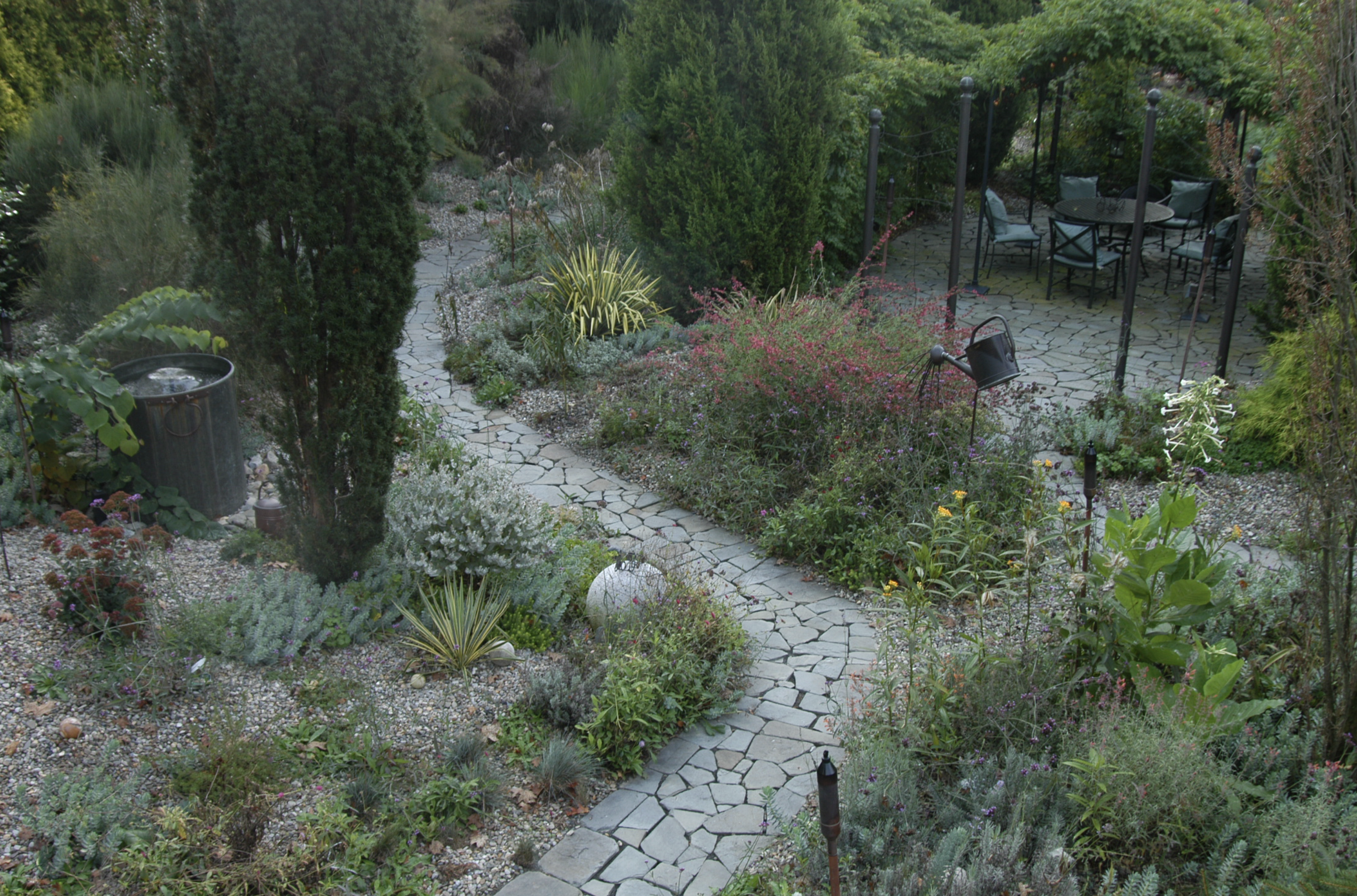 It is hard to remember looking back two decades how much I was influenced at the beginning of this experiment by the writings of the late English gardener and garden writer, Beth Chatto. I went to visit her garden a few years after I had designed and installed my garden and Beth is now one of my gardening heroines. Her garden in the dry eastern part of England has been a source of inspiration for many gardeners. She famously made her Dry Garden on an old compacted car park. The internet was in its infancy so it was hard to find out much information about other gardens unless you went to see them or looked in books.