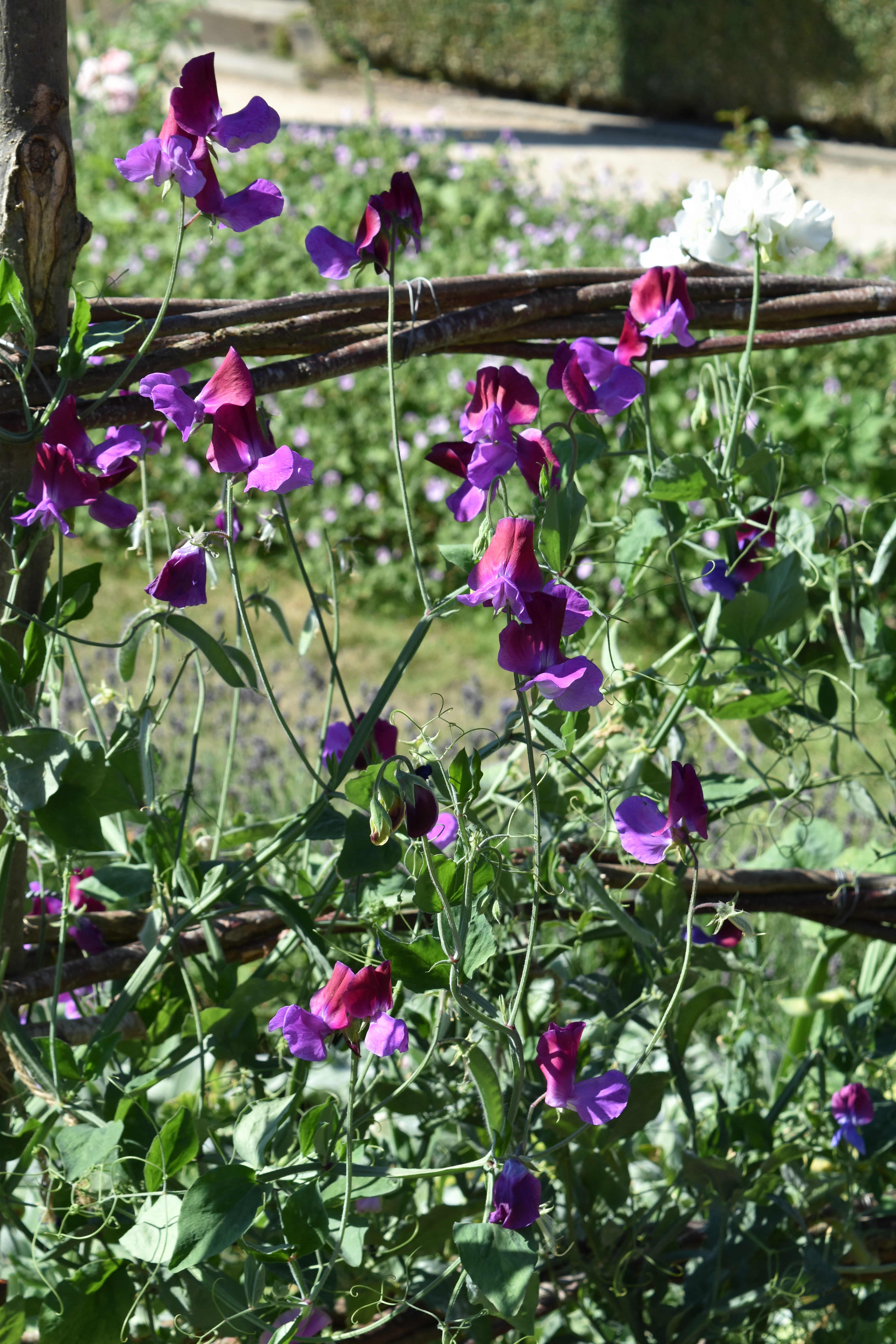 Sweet peas need a trellis or fence to grow up and cling onto with their tendrils