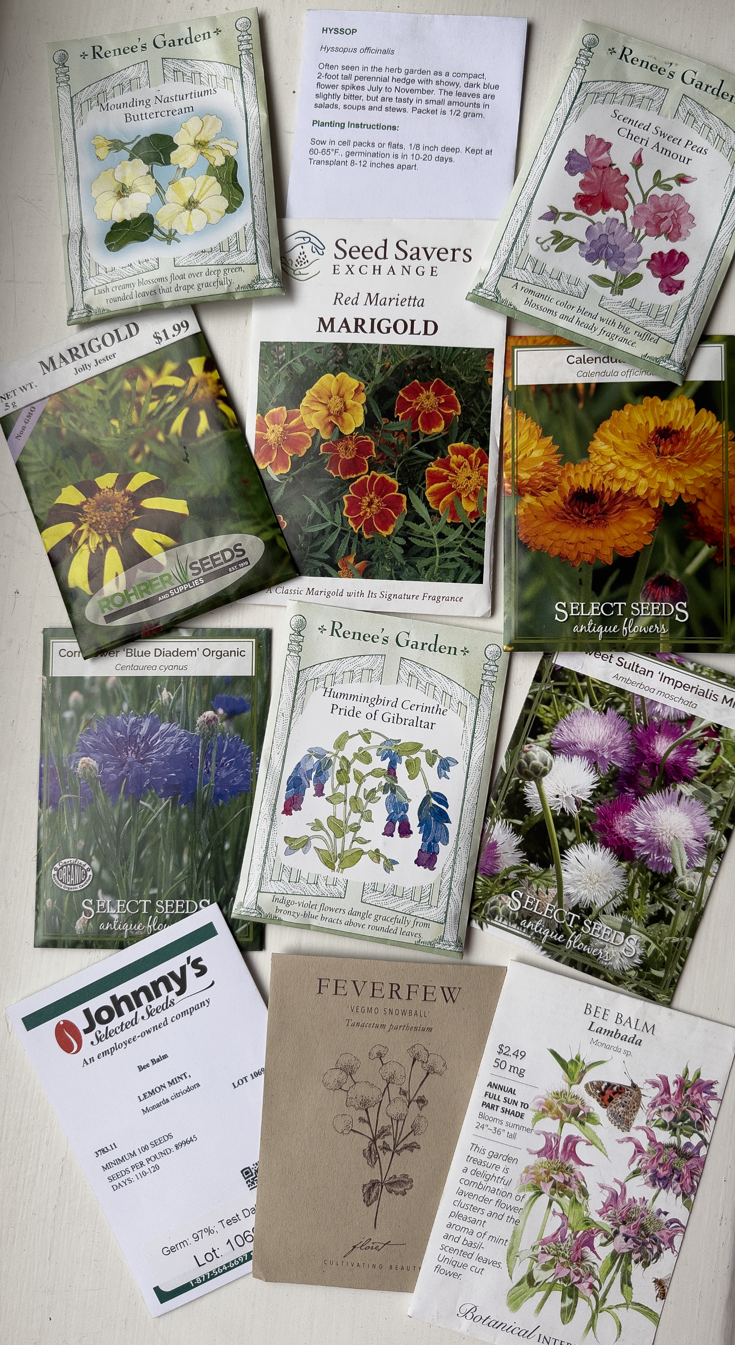 Here are some of my seed packets – each containing many seeds to sow