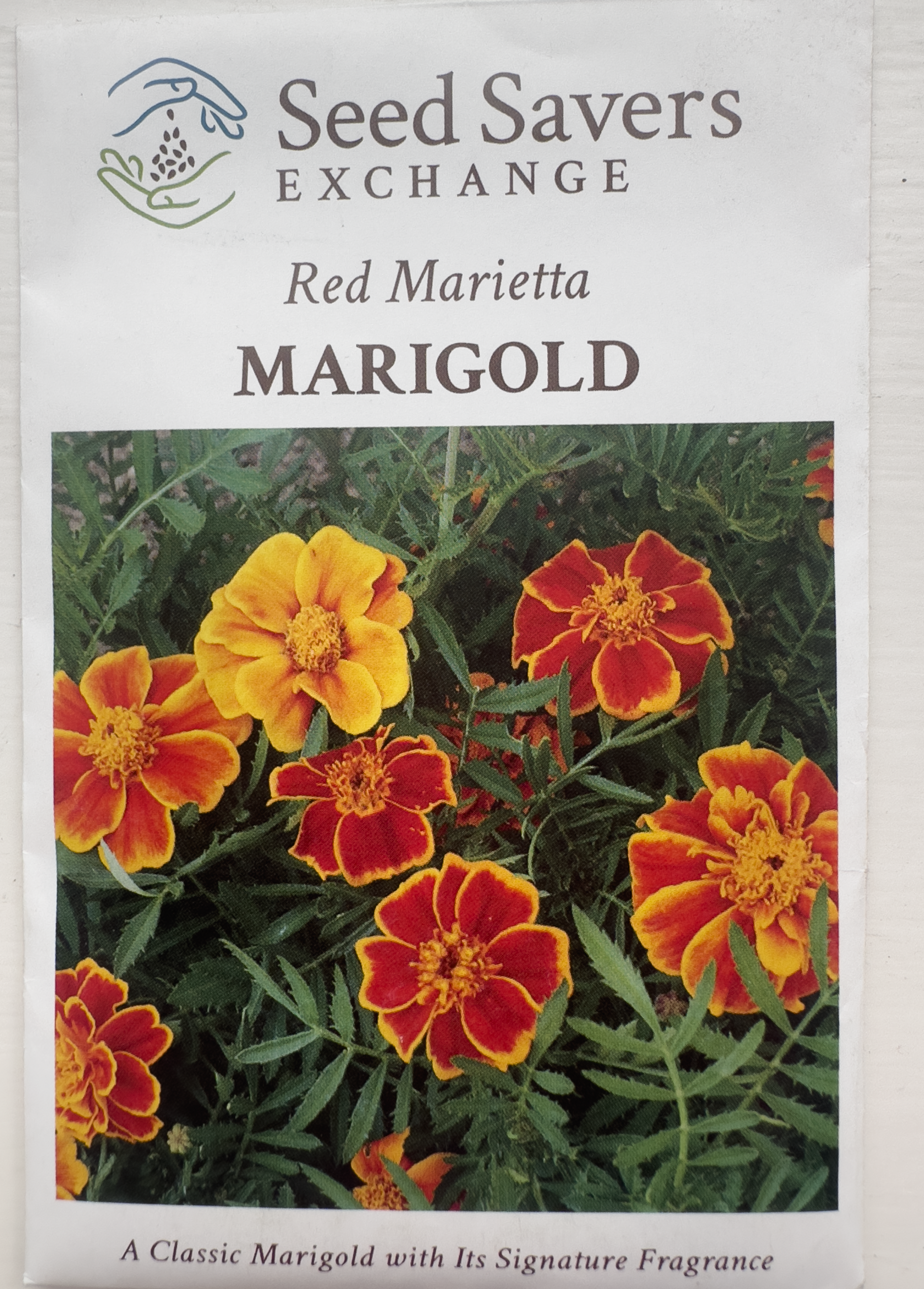 Red Marietta Marigold seed packet from Select Seeds.