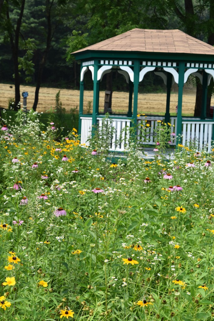 In full disclosure I have visited Pam’s lovely garden many times over the years. It is about two hours north of my garden and I take every opportunity to go visit for a garden stroll and a cup of tea. If it is cold we are in her delightful Pennsylvania farmhouse that has been in her husband’s family for decades. On a hot day her delightful gazebo in the meadow is the favored spot. These are some of my favorite photos of her garden.